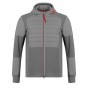 Ciepła, ale wciąż oddychająca – hybrydowa kurtka Audi Sport to właściwy wybór na chłodniejsze dni.   Detale: - Kurtka hybrydowa wykonana z mieszanki materiałów z pikowanym przodem i tyłem oraz wygodnym rozciągliwym materiałem po bokach i rękawach - Z dołączonym kapturem - Zamek błyskawiczny z przodu z kontrastową lamówką - Dwie kieszenie z przodu - Elastyczne mankiety z lamówką - Ozdobny nadruk w czerwone paski z boku kaptura z logo Audi Sport - Pierścionki Audi po wewnętrznej stronie metki na karku Logo Audi Sport na suwaku zamka błyskawicznego oraz na lamówce przy mankietach rękawów Materiał: Pikowany materiał i wyściółka: 100% poliester Elastyczny materiał: 95% poliester 5% elastan Instrukcje opieki: - Prać w pralce 30°C - Nie suszyć w suszarce Kolor: Szary
