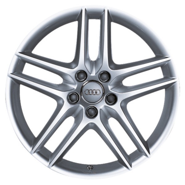 Aluminiowa obręcz odlewana o wzorze z 5 szprychami podwójnymi.Parametry felgiRozmiar felgi: 7,5 J x 17Rozstaw śrub: 112/5Współczynnik odsadzenia felgi ET: 56 mmTa aluminiowa obręcz odlewana nie jest dopuszczona do stosowania łańcuchów przeciwślizgowych.Do opon w rozmiarze 225/45 R17. Opony nie są zawarte w komplecie.Twój dealer Audi chętnie udzieli Ci informacji na temat ograniczeń dla danego modelu samochodu i dopuszczeń UDT.
