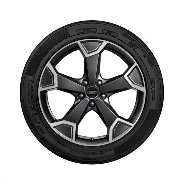 informacje szczegółowe dot. opony Sportowe kompletne koło zimowe w 5-ramiennym secare design w matowej czerni z kontrastowym kolorem matowej szarości kwarcowej z oponą zimową Goodyear UltraGrip Performance SUV Gen-1 AO.   Kontrastowe kolory podkreślają kontury i jeszcze bardziej uwydatniają koło. Farba bazowa jest usuwana mechanicznie z powierzchni obrotowo-symetrycznych, dzięki czemu odsłania się farba bazowa koloru kontrastowego. Następnie nakładany jest bezbarwny lakier. Dlatego wielokolorowe felgi z Oryginalnych akcesoriów Audi zapewniają wystarczającą ochronę przed korozją nawet w zimowych warunkach.   Szczegóły obręczy kół Rozmiar obręczy: 7 J x 19 Koło śrub koła: 112/5 Odsunięcie koła: 43 mm Kolor: czarny matowy z kontrastowym kolorem szarości kwarcu Dopuszczenie do łańcuchów śniegowych: nie   Szczegóły opon Opony: Goodyear UltraGrip Performance SUV Gen-1 AO Rozmiar opon: 235/50 R 19 99V   Dostarczone elementy nie zawierają śrub do kół. Proszę użyć istniejących seryjnych śrub do kół.   Koła są dostarczane w pełni zmontowane i wyważone. Używamy wyłącznie cynkowych odważników bezołowiowych.   Zalecamy zamontowanie zestawu do modernizacji czujnika koła w modelach, które mają system bezpośredniego pomiaru ciśnienia w oponach.       Oznakowanie opon w UE Efektywność paliwowa: C, Przyczepność na mokrej nawierzchni: C. Wartość pomiarowa zewnętrznego hałasu toczenia: 70 dB